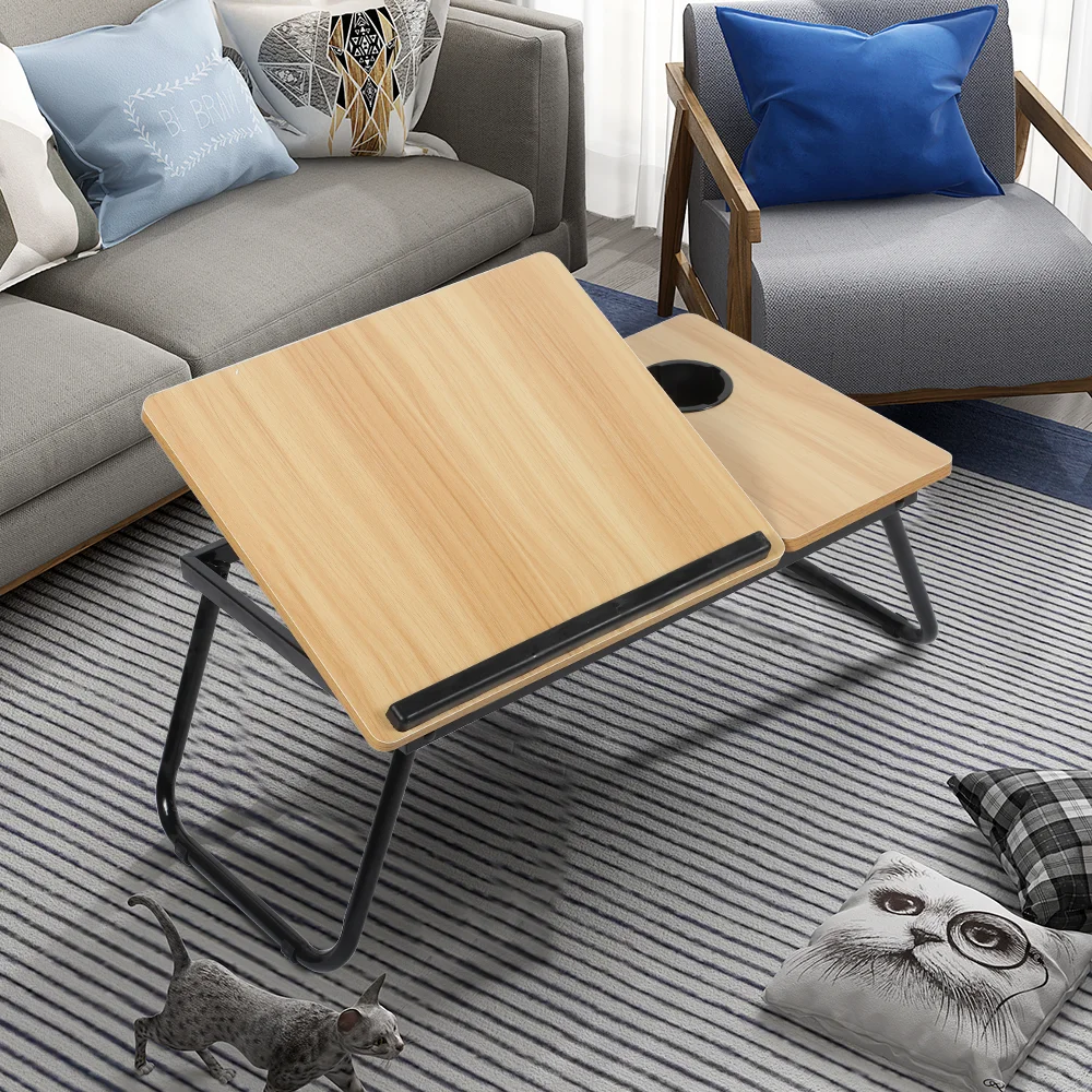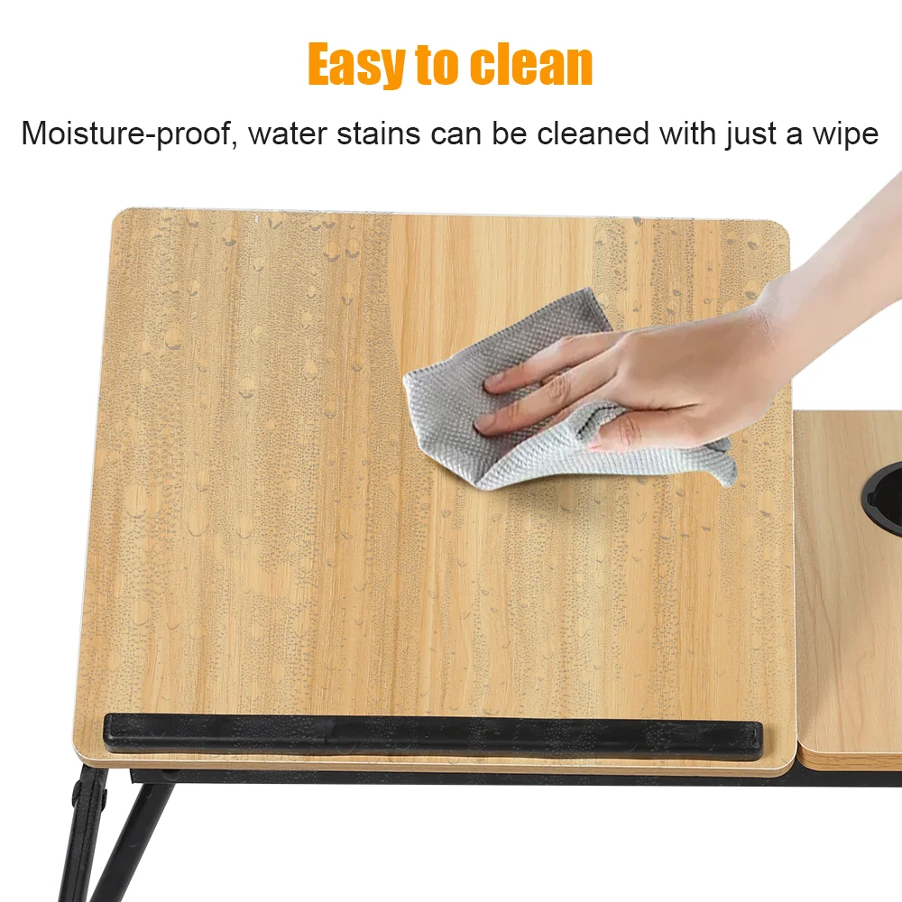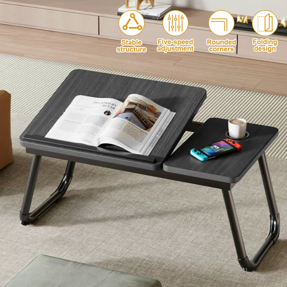 The 5-level tilt-adjustable tabletop (0–45°) allows for perfect viewing angles, while the built-in cup holder ensures your drink stays secure, keeping your workspace clean and uncluttered.